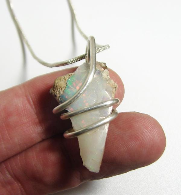 Set in sterling silver, these RAW and gorgeous gemstones display the natural beauty of raw Ethiopian Opal Stones. These stones were handpicked for their beauty with no pieces exactly alike and exhibit a glaring beauty with definite ethereal qualities. An ideal gift-giving choice for October birthdays and anniversaries, these gorgeous pendants symbolize hope and confidence. Stunning and will be passed down to future generations as family heirlooms.