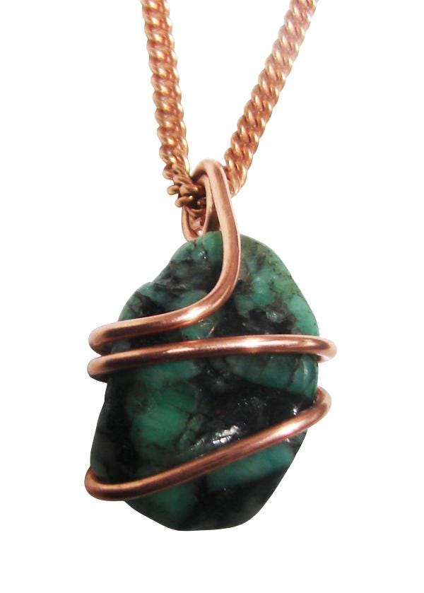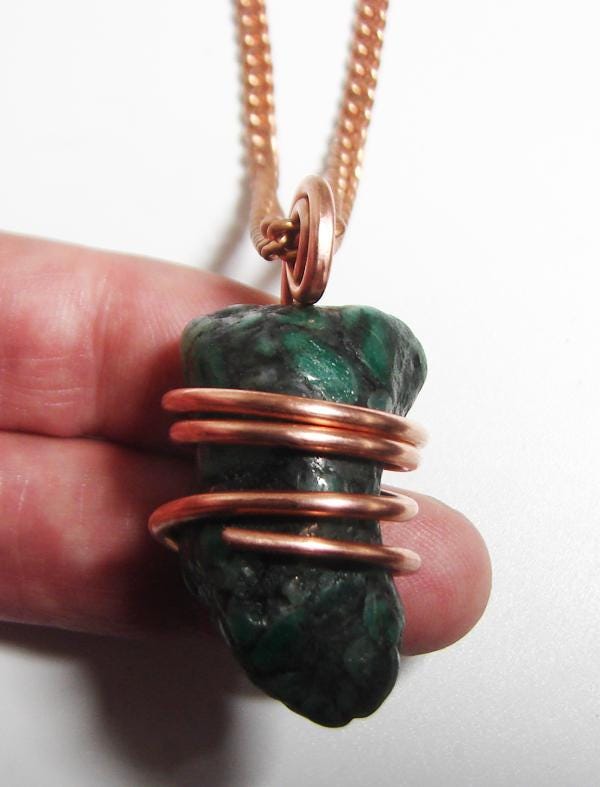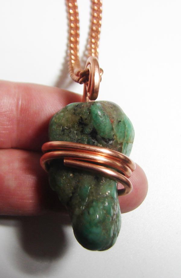 This is an original necklace handmade with a large Emerald from Brazil and Copper! It is exceptionally vibrant and unusual!