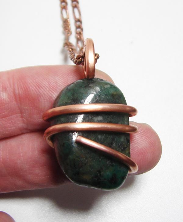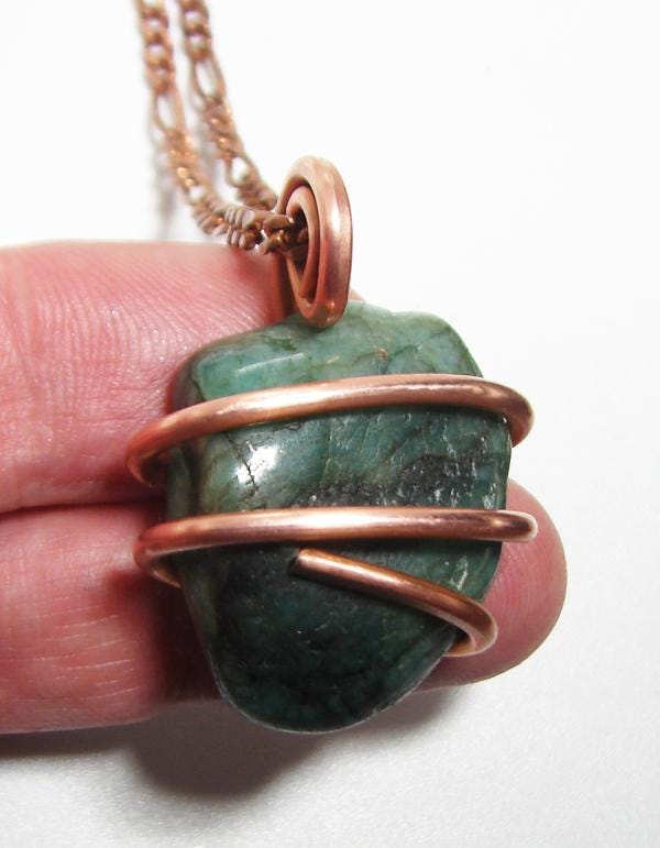 This is an original necklace handmade with a large Emerald from Brazil and Copper! It is exceptionally vibrant and unusual!
