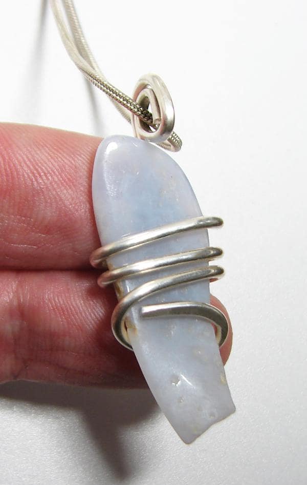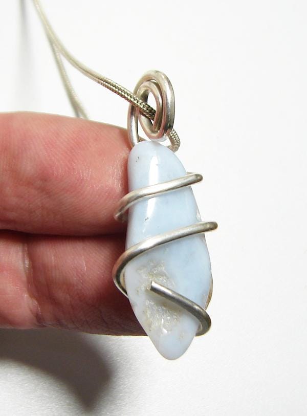 Blue Chalcedony is often used during public speaking. Working with the Throat and Third Eye Chakras, Blue Chalcedony is believed to facilitate an exuberant vibe from a speaker to an audience. Blue Chalcedony can be used when facilitating telepathic communication, as well as communication with other realms.