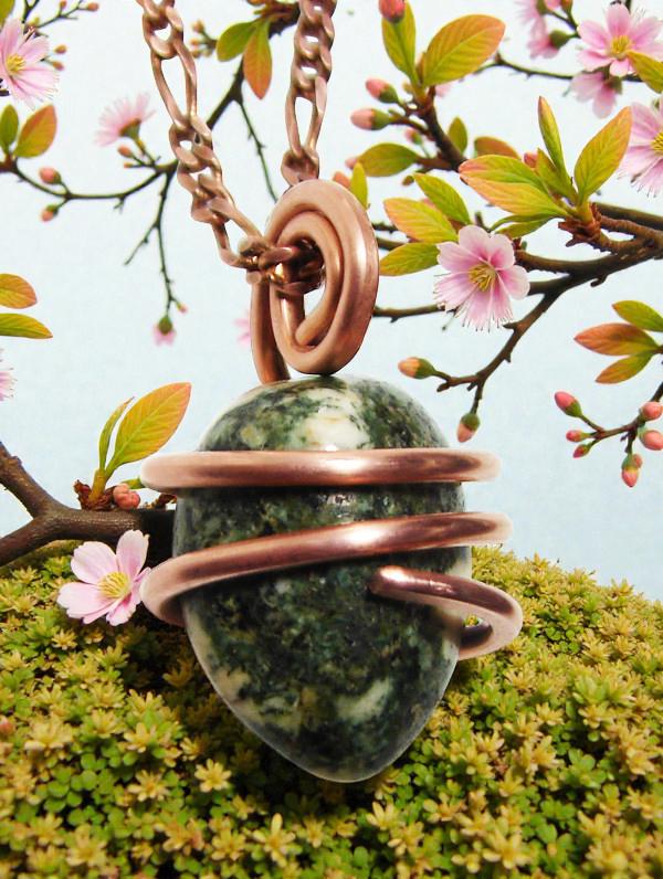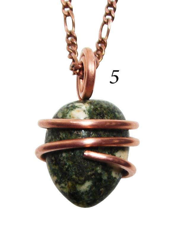 Stonehenge Preseli Bluestone Pendant, the Druid stone from Wales, helpful for awakening Avalon, Druid, Merlin and Arthurian Energies, hand-wrapped in copper or Merlin's Gold for maximum energy transference.