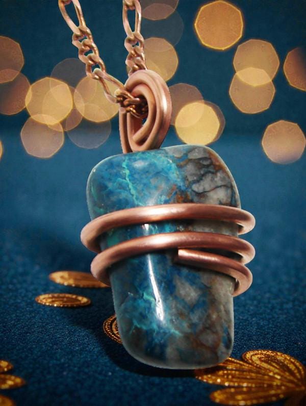 SHATTUCKITE AJOITE CHRYSOCOLLA MESSINA PENDANT IN COPPER