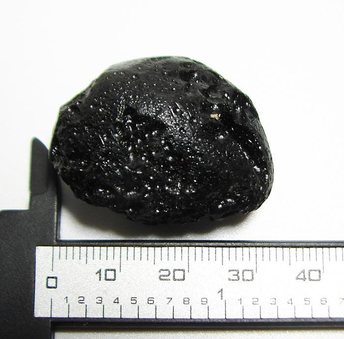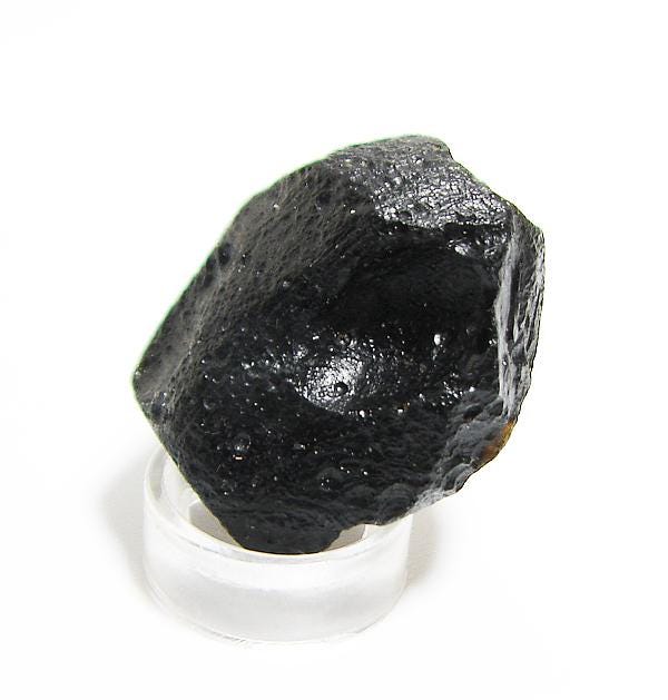 This Tibetan Tektite was found and collected by the Dorkma, a tribe of Nomads that live on the Chang Tang or Great Plateau in central and northern Tibet. It is said that these Tektites are worn in ceremonial garb by monks and lamas, and that their Sanskrit name is "agni mani", meaning "fire pearl". They are also known as Indochinite Tektite and can serve as a Markaba Chakra Stone.