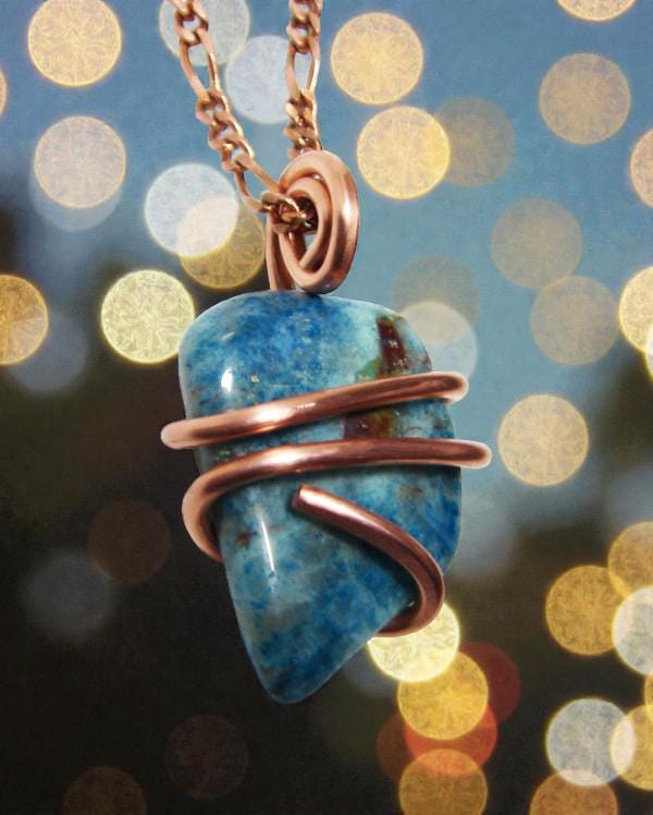 This pendant is wrapped in Copper for maximum transfer of energy.