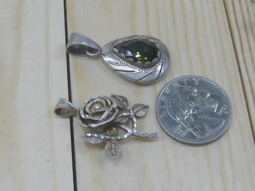 The sterling silver rose is not part of this auction but only shown to show size of Moldavite pendant.