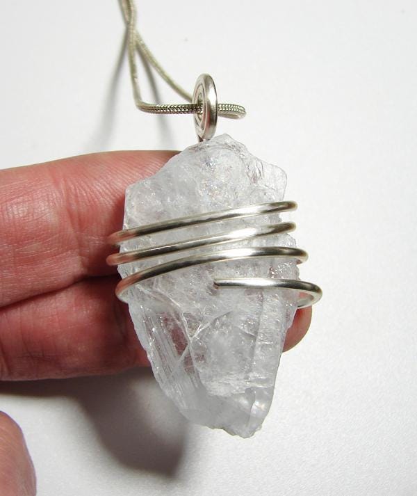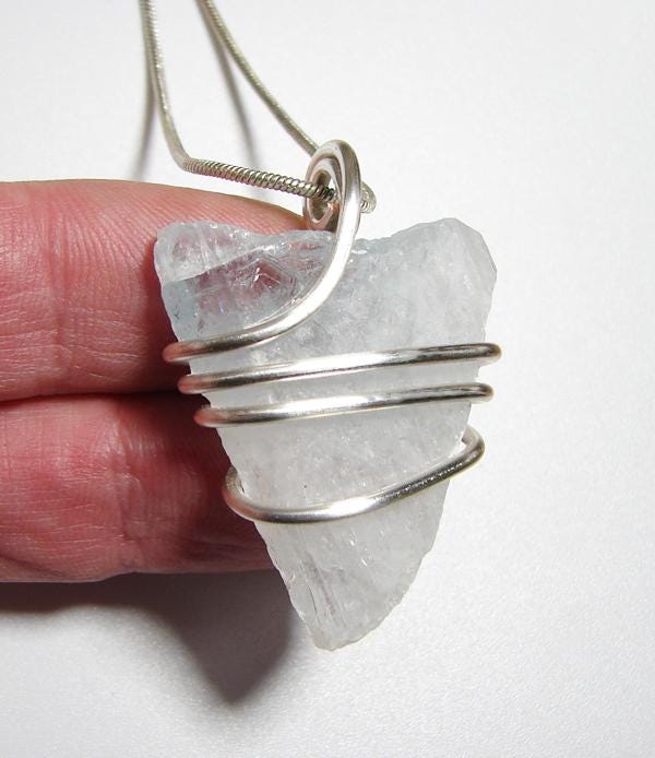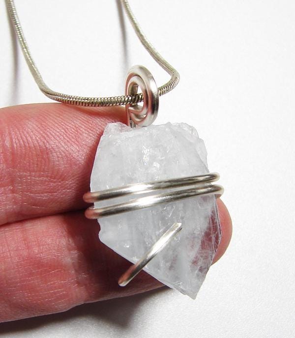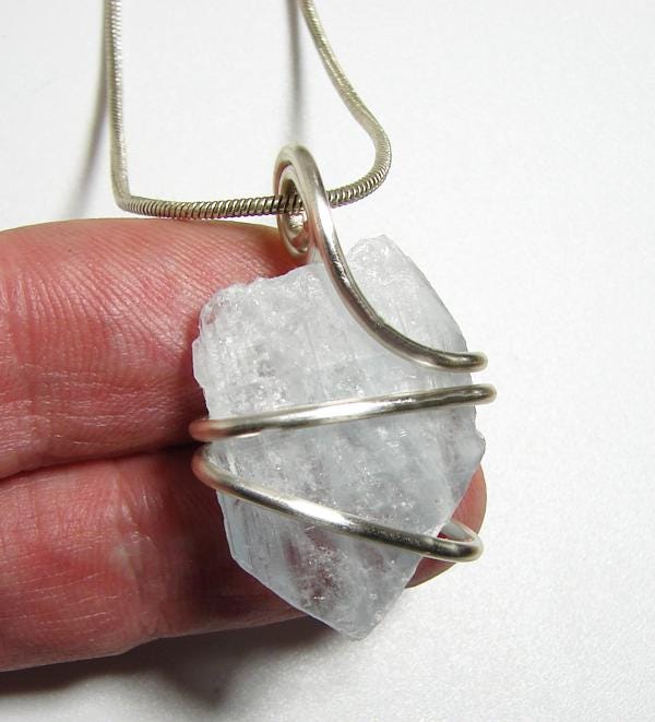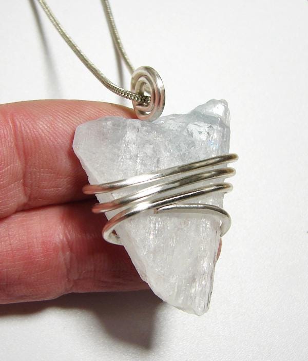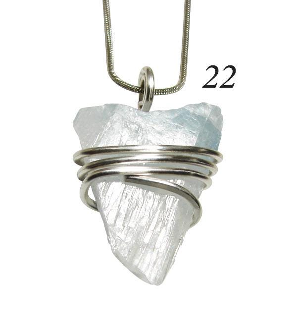 Angel Communication Celestite, used for talking with Angels and for Loss, and known as the Pale Blue of the Sky Crystal. This pendant is very soothing and is also known as a Christian necklace as one can use it for connecting with one's God.