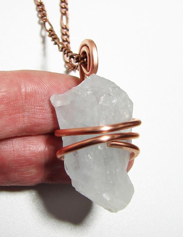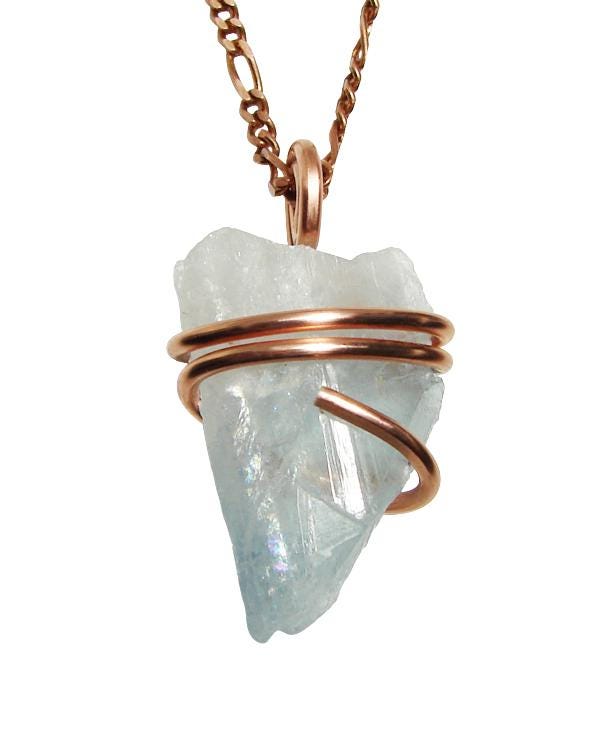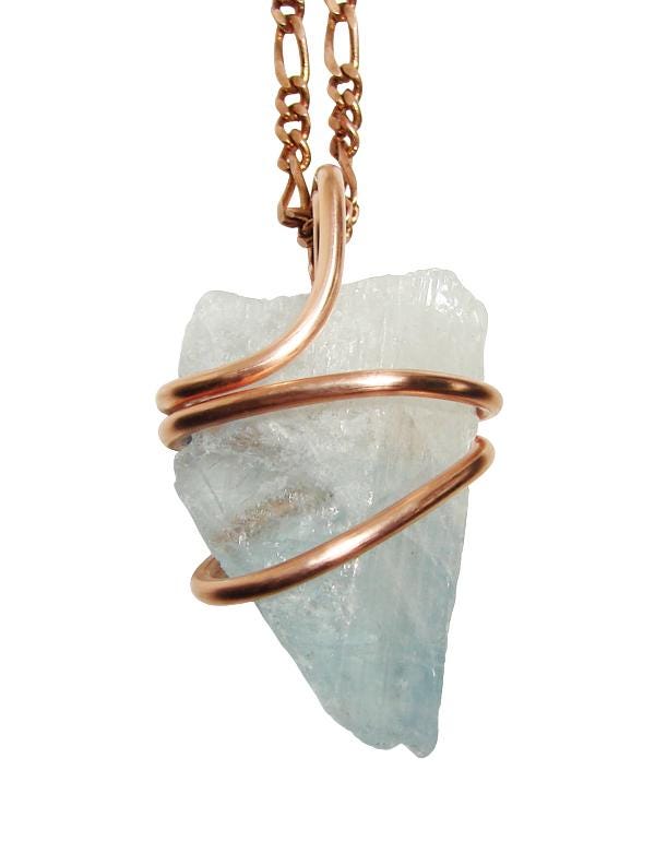 This is a Gorgeous Blue Celestite Pendant Wrapped in Copper