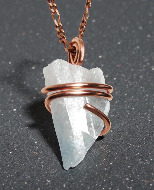 Angel Communication Celestite, used for talking with Angels and for Loss, and known as the Pale Blue of the Sky Crystal. This pendant is very soothing and is also known as a Christian necklace as one can use it for connecting with one's God.