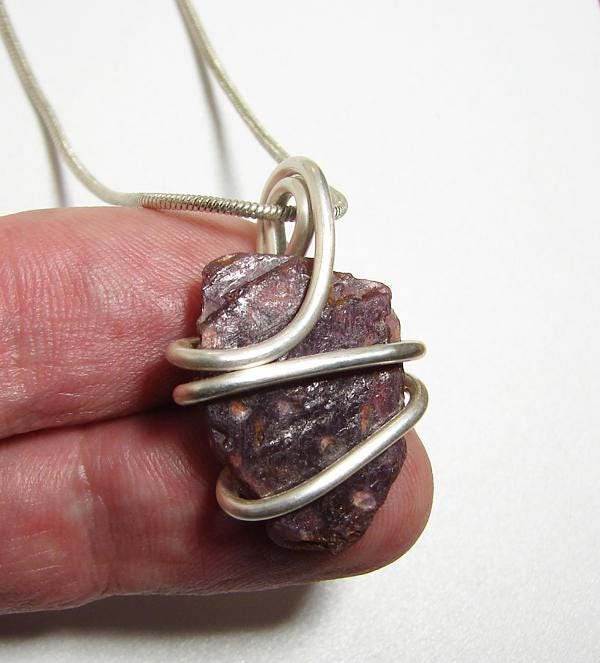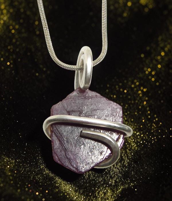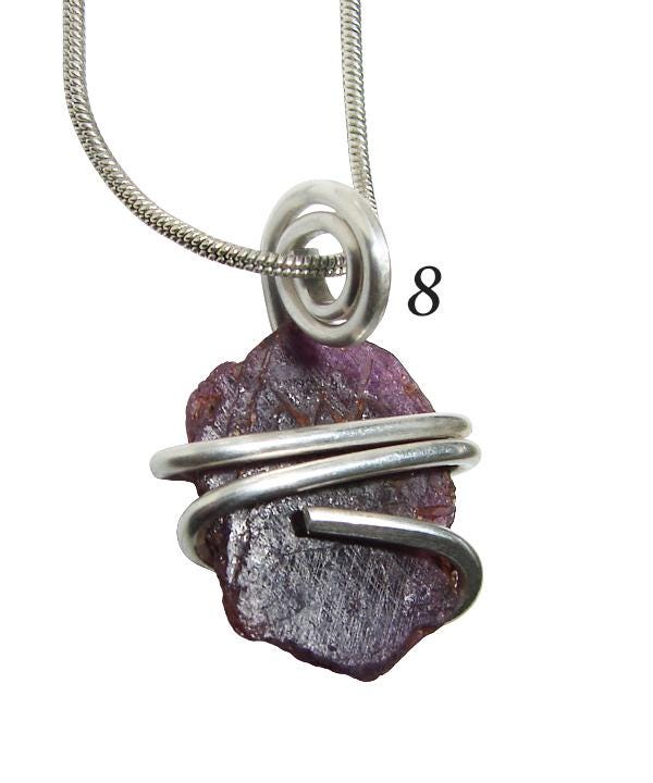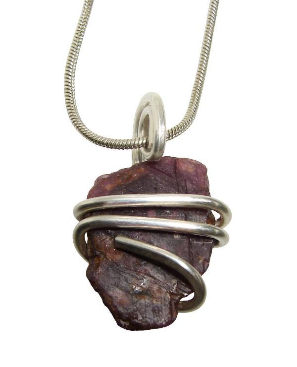This is a Grade A grade crystal wrapped in Sterling Silver and will be sent with a silver chain. There are many grades of Rough Record Keeper Ruby Crystals and most are B or C grade. These are A grade and came directly from the Indian wholesaler who lives in India and not through a dealer who lives in the United States. Because of this, we can offer a higher grade instead of picking through seconds and what others dealers have already picked through.