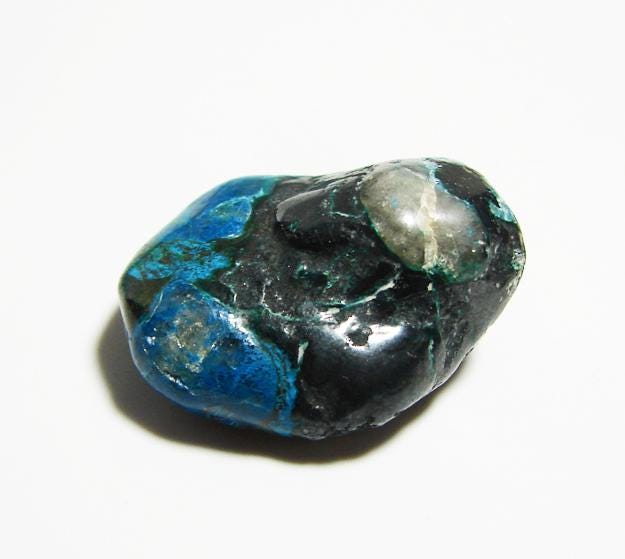 Ajoite is a rare stone that helps one to connect to the higher self and is known to promote peace and harmony. It is an excellent stone for meditation. It is useful for crystal healing and helps to boost the energy of stones nearby. It also helps to heal sorrow and fear and is a true workhorse in the metaphysical community. It is also known as a crystal of transformation helping one to work through life's changes. It is useful for opening up the heart chakra and enhances creativity. Ajoite can also help to clear one's aura.