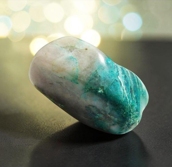 Ajoite is a rare stone that helps one to connect to the higher self and is known to promote peace and harmony. It is an excellent stone for meditation. It is useful for crystal healing and helps to boost the energy of stones nearby. It also helps to heal sorrow and fear and is a true workhorse in the metaphysical community. It is also known as a crystal of transformation helping one to work through life's changes. It is useful for opening up the heart chakra and enhances creativity. Ajoite can also help to clear one's aura.