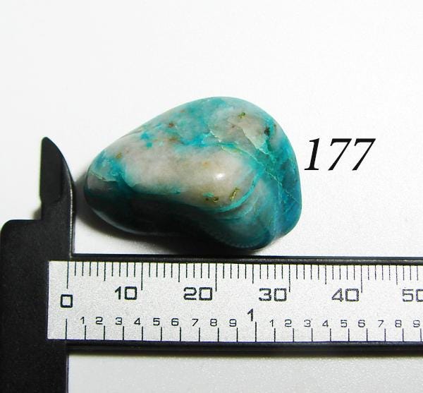 Ajoite is a rare stone that helps one to connect to the higher self and is known to promote peace and harmony. It is an excellent stone for meditation. It is useful for crystal healing and helps to boost the energy of stones nearby. It also helps to heal sorrow and fear and is a true workhorse in the metaphysical community. It is also known as a crystal of transformation helping one to work through life's changes. It is useful for opening up the heart chakra and enhances creativity. Ajoite can also help to clear one's aura.