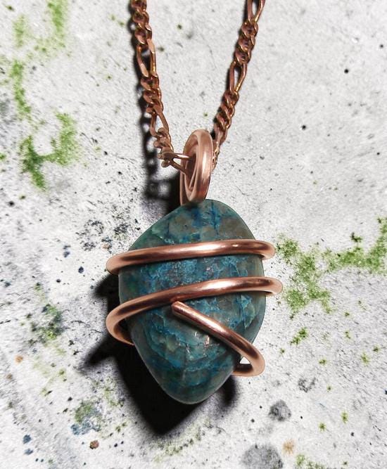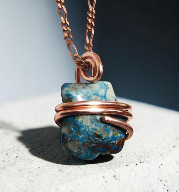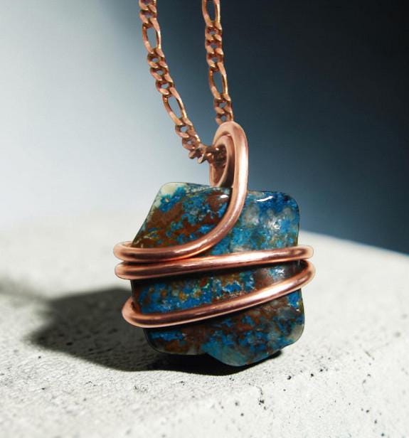 SHATTUCKITE AJOITE CHRYSOCOLLA MESSINA PENDANT IN COPPER