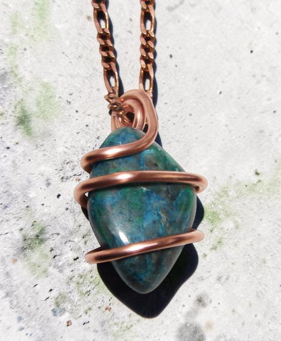 This pendant is wrapped in Copper for maximum transfer of energy.